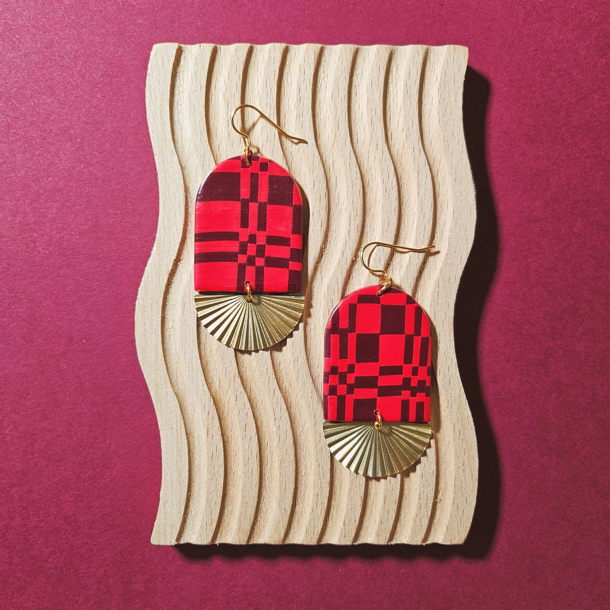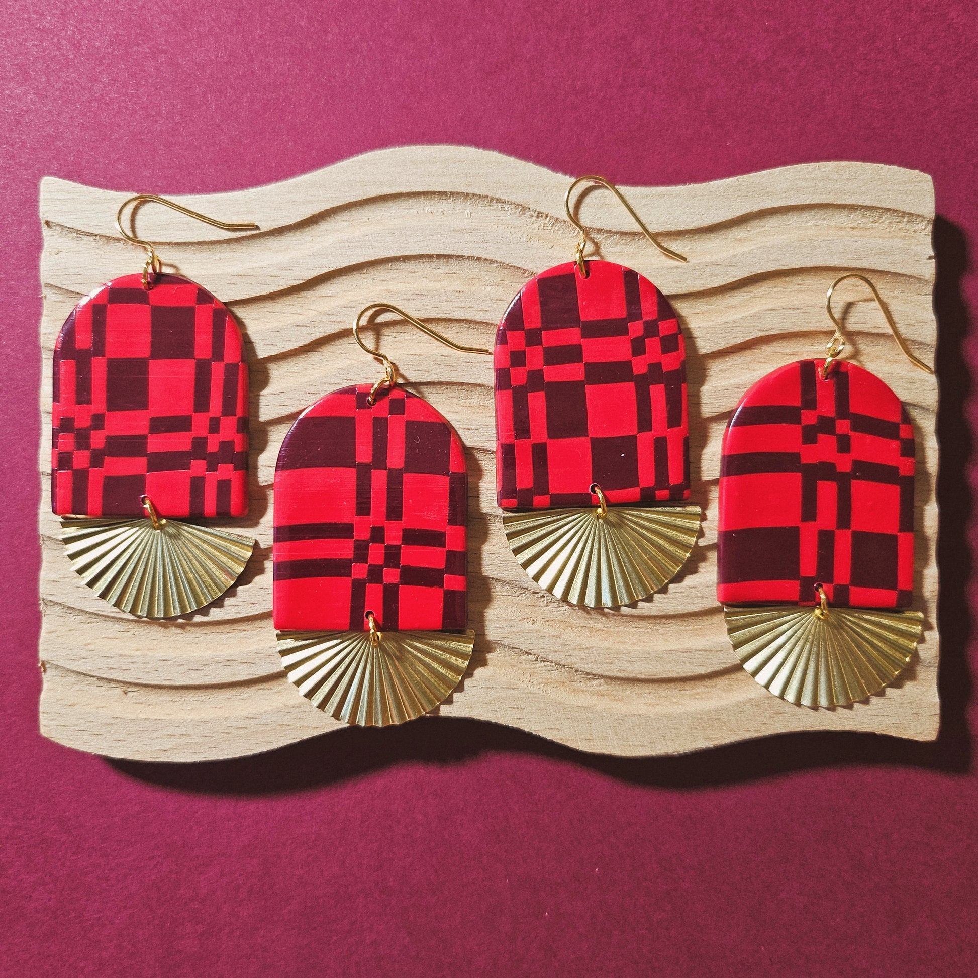 Earrings are made using polymer clay and raw brass charms with gold plated brass hooks.